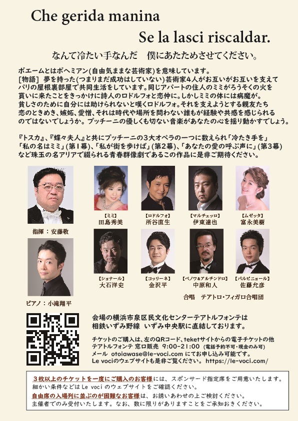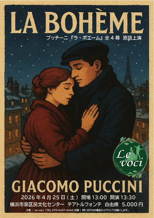 特別鑑賞イベント:2026年4月 プッチーニ「ラ・ボエーム」(主催:Le voci、神奈川、横浜泉区民文化センター テアトルフォンテ)