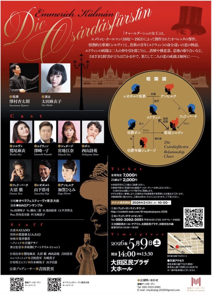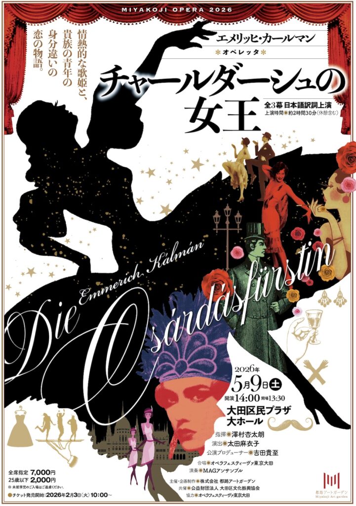 公演のお知らせ:2026年5月 カールマン「チャールダーシュの女王」(主催:都路アートガーデン、東京、大田区民プラザ 大ホール)